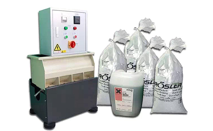 通過將產品放進彩色石子和藥水混合的特殊液體中